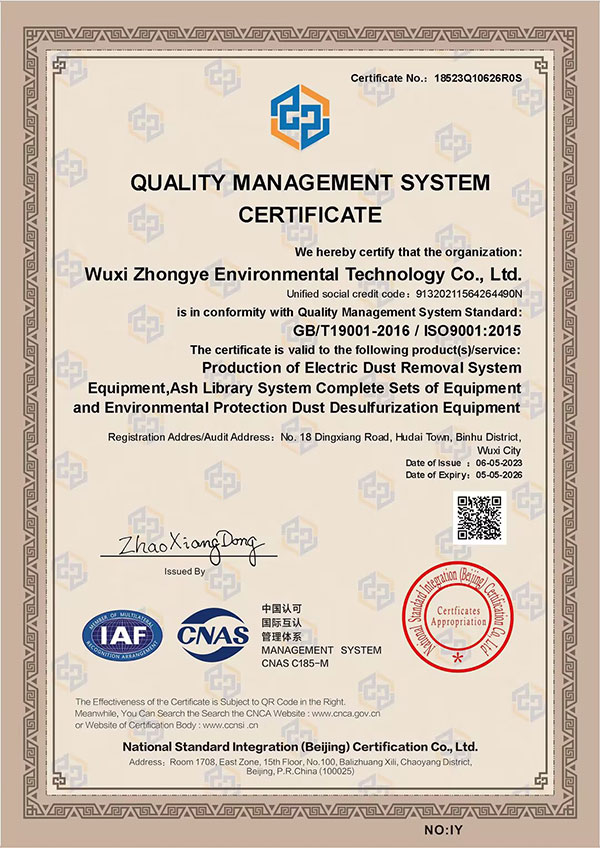 WUXI ZHONGYE ENVIRONMENTAL PROTECTION TECHNOLOGY CO.,LTD. ALL RIGHT RESERVED.
